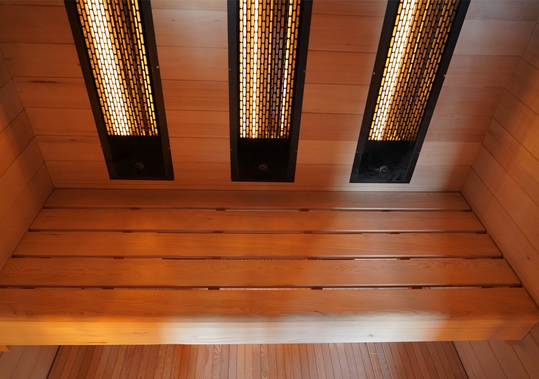 Infrardeča savna je opremljena z 1 ogljičnim grelcem in 6x grelci z rdečo svetlobo/magnezijem.