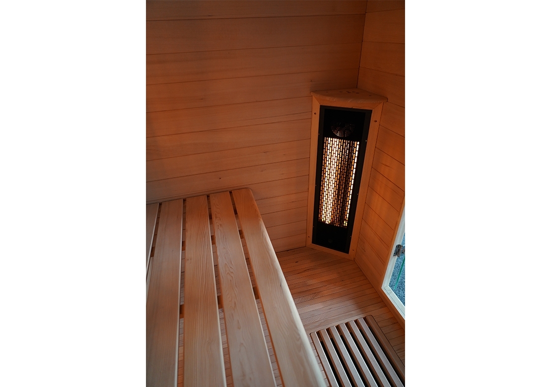 Nadzor intenzivnosti posameznih grelcev v savni vam omogoča, da temperaturo in učinek prilagodite svojim potrebam in željam. S to funkcijo lahko izberete nežno ogrevanje za sproščanje ali intenzivnejše ogrevanje za globlje razstrupljanje telesa. Nastavitev intenzivnosti je preprosta in se izvaja prek nadzornega panela savne. Možnost regulacije temperature je idealna, če savno uporablja več oseb z različnimi zahtevami. Ta funkcija poveča prilagodljivost in udobje savne, tako da lahko vsak uživa v svojem prilagojenem trenutku sprostitve.