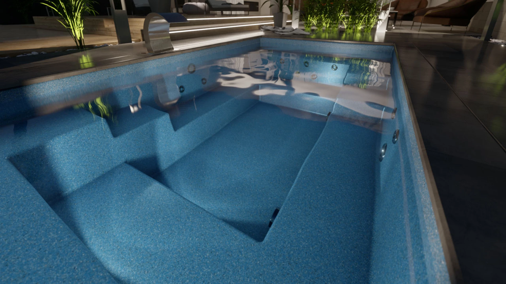 Telo bazena je izdelano v enem kosu, brez spojev ali zvarov, kar zagotavlja brezhibno stabilnost, izjemno trdnost in estetsko dovršenost.