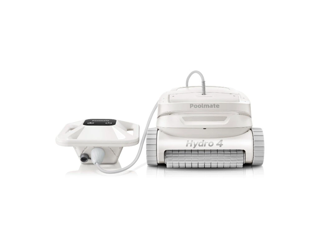 Poolmate Hydro 4 baterijski robotski čistilec bazenov – brezžična moč. Pametno čiščenje. Brezskrbno vzdrževanje. Preoblikujte nego bazena z Poolmate Hydro 4 Battery Edition – naprednim brezžičnim robotskim čistilcem bazenov, zasnovanim za neprimerljivo zmogljivost in popolno svobodo. Zasnovan za bazene do 102 m², združuje pametno tehnologijo, dvojni motor in visokokapacitetno filtriranje, da vaš bazen ostane brez madežev na dnu, stenah in vodni gladini. Resnična brezžična udobnost Hydro 4, ki ga poganja 14.400 mAh polnilna baterija, deluje do 210 minut z enim polnjenjem. Brez kablov, brez omejitev – le temeljito in dosledno čiščenje vsakega centimetra vašega bazena. Močna sesalna moč 5070 GPH Z dvojnimi črpalkami in močnimi krtačami zlahka odstrani večje odpadke in drobni prah. Algoritem Anti-Resonance zagotavlja več kot 95 % pokritost za popolne rezultate od dna do vodne gladine. Aplikacija za pametne telefone z oblačno povezljivostjo Povežite se prek WiFi ali Bluetooth in prevzemite popoln nadzor z aplikacijo Poolmate. Načrtujte čiščenje, spreminjajte načine delovanja ali ga vodite ročno – kadarkoli in kjerkoli. Velik filter z zgornjim polnjenjem 4,1 l Uživajte v hitrem in enostavnem čiščenju z velikim filtrom z zgornjim polnjenjem. Dvignite pokrov, odstranite košaro in sperite. Tako preprosto – manj nereda, več udobja. Optimiziran za zmogljivost Dvojni pogonski motorji in pametna navigacija Hydro 4 zagotavljajo nemoteno in neprekinjeno delovanje. Zasnovan za učinkovitost in izdelan za navigacijo brez zatikanja.